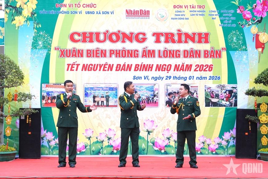 | Tiết mục văn nghệ do cán bộ, chiến sĩ Đồn Biên phòng Sơn Vĩ biểu diễn, góp phần tạo không khí vui tươi, ấm áp tại chương trình. |