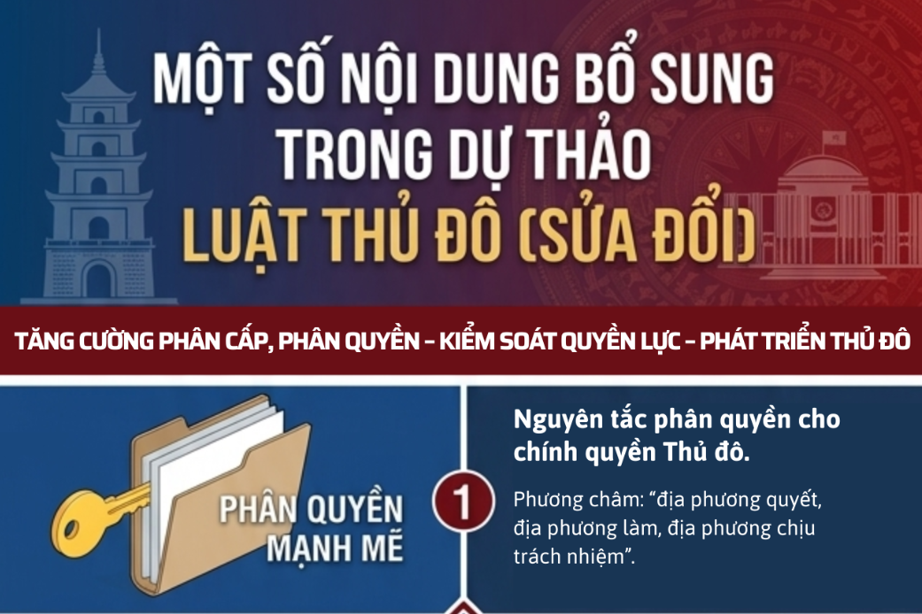 Dự thảo Luật Thủ đô (sửa đổi) bổ sung quy định về nguyên tắc phân quyền cho chính quyền thành phố Hà Nội nhằm thể chế hóa chủ trương...