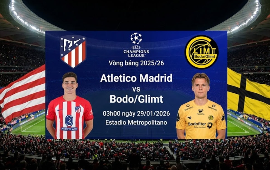 Trận cạnh tranh quyết định trong lượt cuối vòng bảng UEFA Champions League 2025/26 giữa Atletico Madrid và Bodo/Glimt. Atletico cần một kết quả tích cực để cạnh tranh tấm vé vào top 8 nhánh knock-out, trong khi Bodo/Glimt tự tin sau một vài màn trình diễn ấn tượng gần đây.
