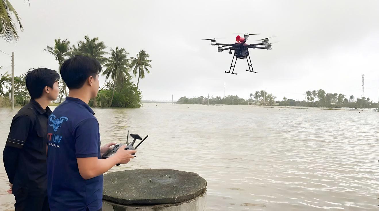Nước dâng quá nhanh trong đêm, nhiều khu vực đã bị cô lập hoàn toàn, nước vượt mái nhà, không điện, không nước, điện thoại hết pin, chỉ còn một cách duy nhất là dùng UAV để tiếp cận.