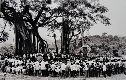 Chiều 16-8-1945, tại gốc đa Tân Trào, quân Giải phóng xuất quân tiến về Hà Nội, mở đầu cuộc Tổng khởi nghĩa giành chính quyền. Ảnh tư liệu/TTXVN |