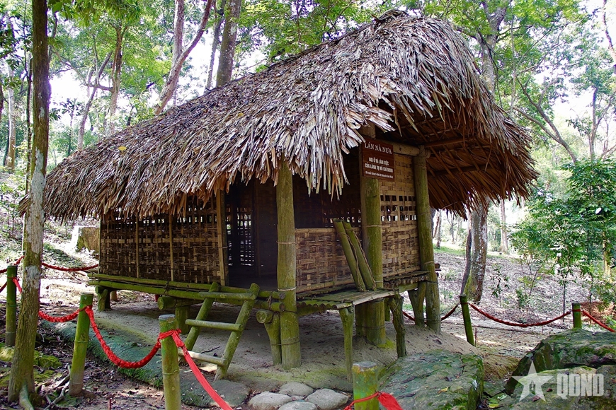 | Lán Nà Nưa được dựng theo kiểu nhà sàn của đồng bào miền núi, nằm ở sườn núi Nà Nưa (Tân Trào, Tuyên Quang), gồm 2 gian: 1 gian Bác nghỉ ngơi, 1 gian Bác làm việc và tiếp khách. Ảnh: Hải Ly |