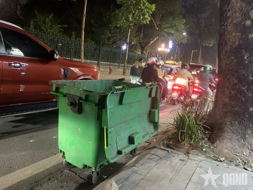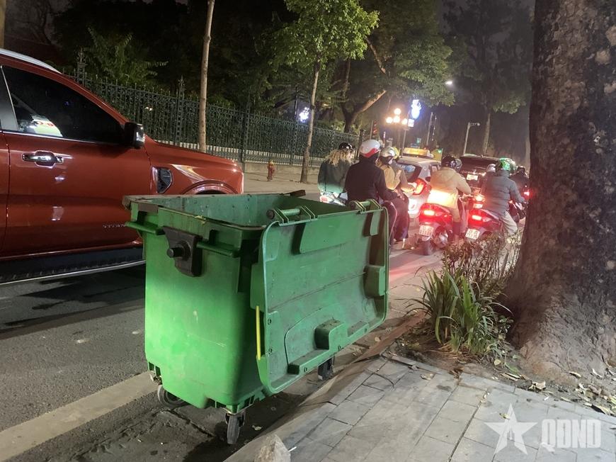 | Tuy đã có thùng chứa nhưng rác thải vẫn bị vứt bừa bãi trên vỉa hè đường Xã Đàn (Hà Nội). Ảnh: HỮU TRUNG |