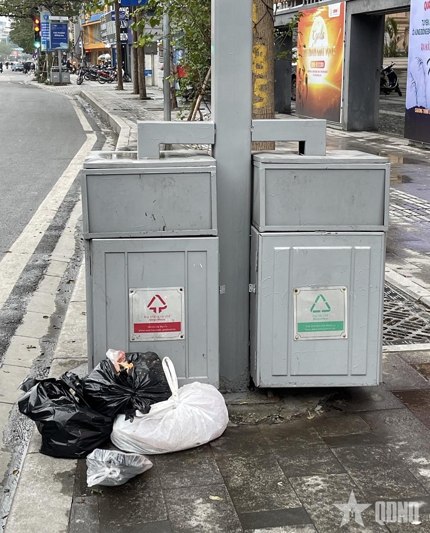 | Thiếu thùng rác là một trong những trở ngại khiến việc phân loại rác thải tại nguồn gặp khó khăn. Ảnh VŨ DUNG |