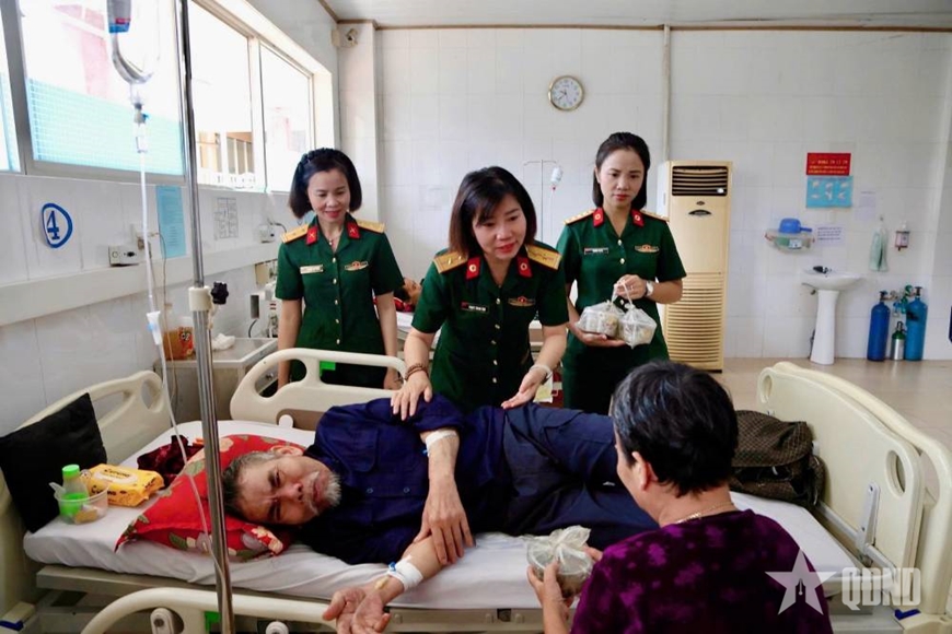 Cán bộ, hội viên phụ nữ Bệnh viện Quân dân y 16 thăm hỏi người bệnh đang điều trị tại Bệnh viện.