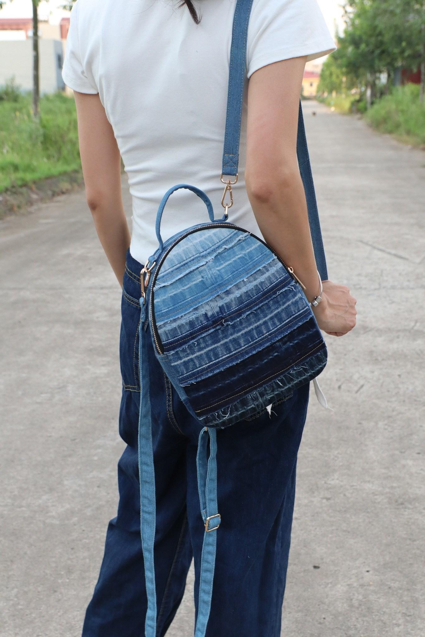 Chiếc ba lô xinh xắn được làm từ đồ jean cũ. Ảnh: Mèo Tôm Handmade |