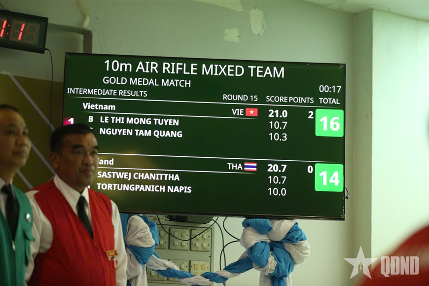 Trưa 12-12, tại Thái Lan, Lê Thị Mộng Tuyền và Nguyễn Tâm Quang tranh tài nội dung hỗn hợp nam nữ 10m súng trường tại SEA Games 33. Cặp xạ thủ của Việt Nam đánh bại đối thủ Thái Lan với tỷ số 16-14, qua đó giành huy chương vàng.