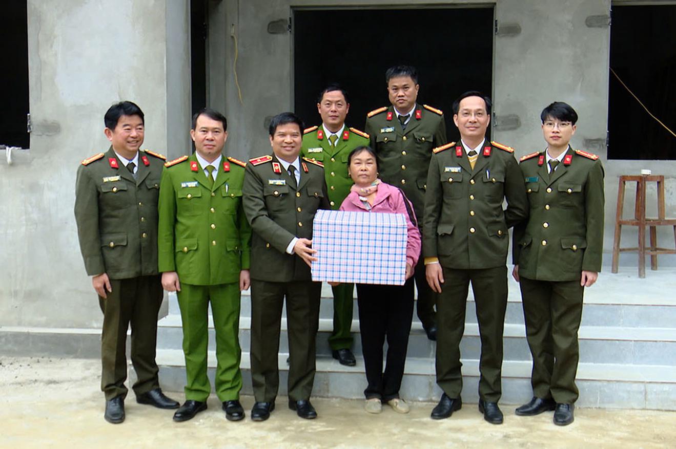Công an tỉnh Sơn La tặng quà cho hộ nghèo xóa nhà tạm tại xã Chiềng Khoa, huyện Vân Hồ. Ảnh: sonla.gov.vn