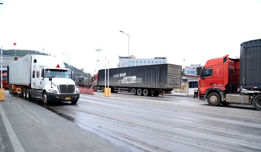 | Xe tải chở hàng hóa lưu thông qua Cửa khẩu Chi Ma (Lạng Sơn) ngày 4-2. Ảnh: CTV |