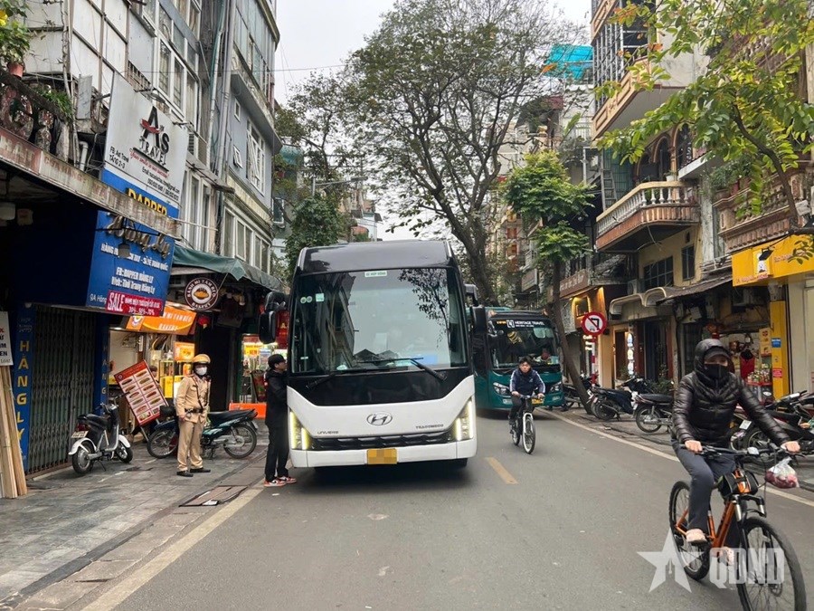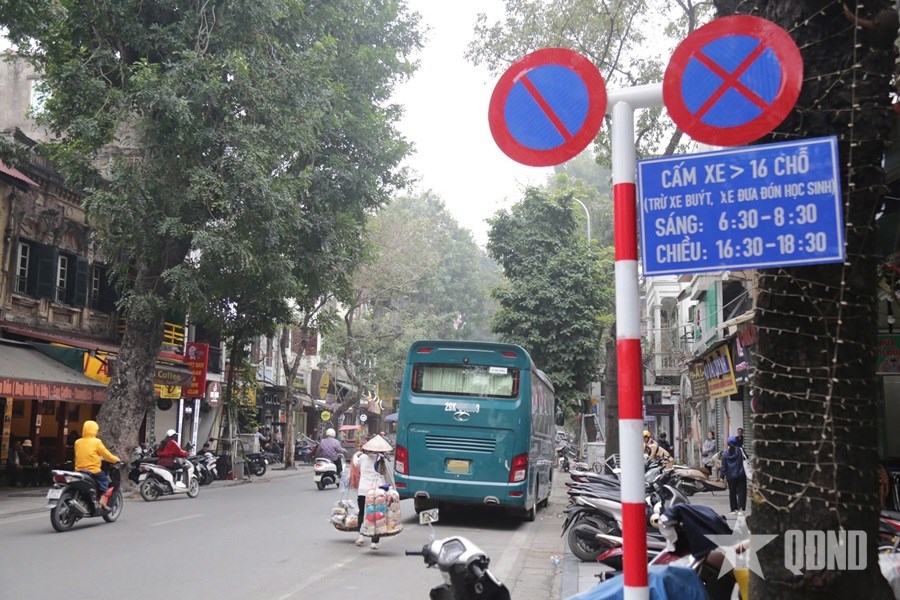 Từ ngày 1-3 đến 31-8-2025, lực lượng chức năng tăng cường triển khai phương án phân luồng, hướng dẫn phương tiện tại các tuyến phố thuộc khu vực hạn chế xe ô tô trên 16 chỗ theo phương án thí điểm của UBND TP Hà Nội. Ô tô trên 16 chỗ bị cấm hoạt động trong giờ cao điểm sáng (từ 6 giờ 30 phút đến 8 giờ 30 phút) và chiều (từ 16 giờ 30 phút đến 18 giờ 30 phút) trên một số tuyến phố thuộc khu vực phố cổ và xung quanh hồ Hoàn Kiếm.