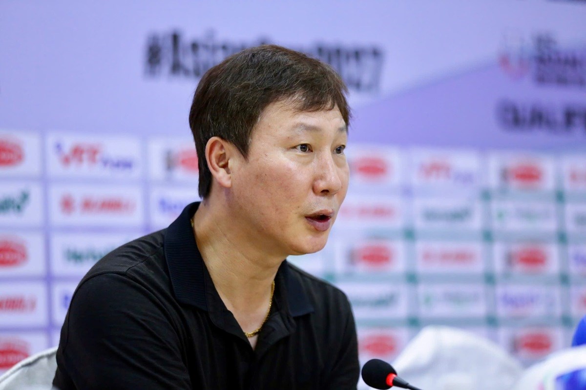 Huấn luyện viên Kim Sang-sik chia sẻ sau trận đấu. Ảnh: VFF