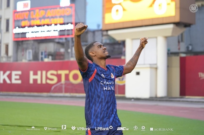 | Alan Grafite ghi bàn cho đội bóng Công an Hà Nội trước khi rời sân vì chấn thương. Ảnh: CLB Công an Hà Nội |