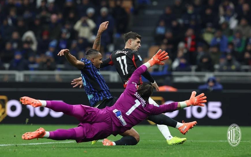 | Christian Pulisic (số 11) ghi bàn duy nhất ở phút 54, giúp AC Milan giành chiến thắng 1-0 trong trận derby với Inter Milan. Ảnh: acmilan.com |