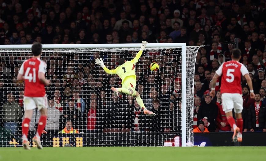 | Thủ thành David Raya (Arsenal) lên quá cao, tạo điều kiện để Richarlison gỡ lại 1 bàn cho Tottenham. Ảnh: Getty |