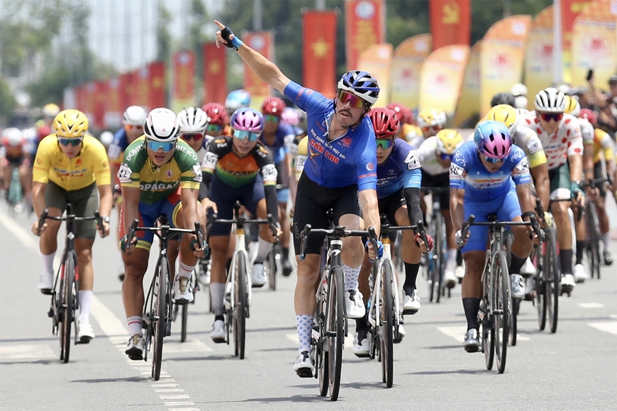 Nick Kergozou lần thứ 10 thắng chặng ở Cúp xe đạp Truyền hình TP Hồ Chí Minh 2025. Ảnh: thanhnien.vn