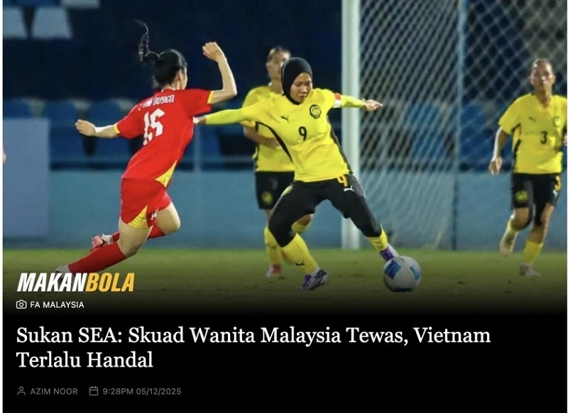 Sau chiến thắng đậm 7-0 của đội tuyển nữ Việt Nam trước đội tuyển nữ Malaysia ở trận ra quân bảng B, SEA Games 33, tờ Makan Bola viết “đội tuyển nữ Malaysia thua, Việt Nam thực sự quá mạnh”.