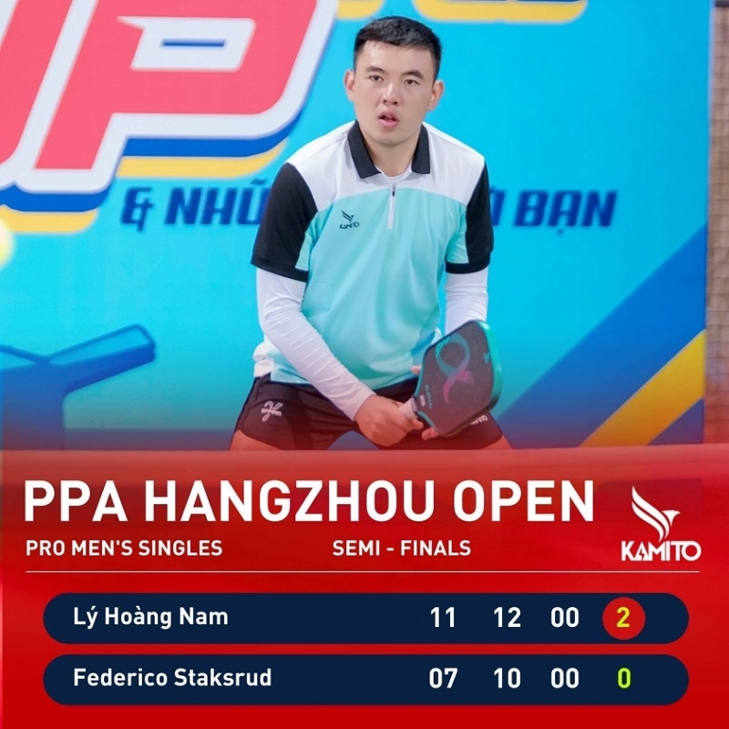 Tay vợt Việt Nam Lý Hoàng Nam vừa viết nên cột mốc lớn của pickleball nước nhà khi đánh bại Federico Staksrud - tay vợt đang đứng số 2 thế giới tại bán kết PPA Asia Tour Hangzhou Open 2025.