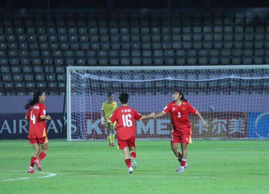 Các cầu thủ nữ Việt Nam mừng chiến thắng trước U20 Bangladesh. Ảnh: VFF