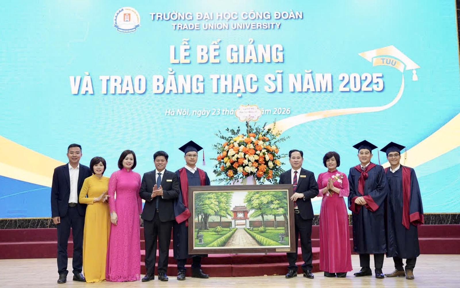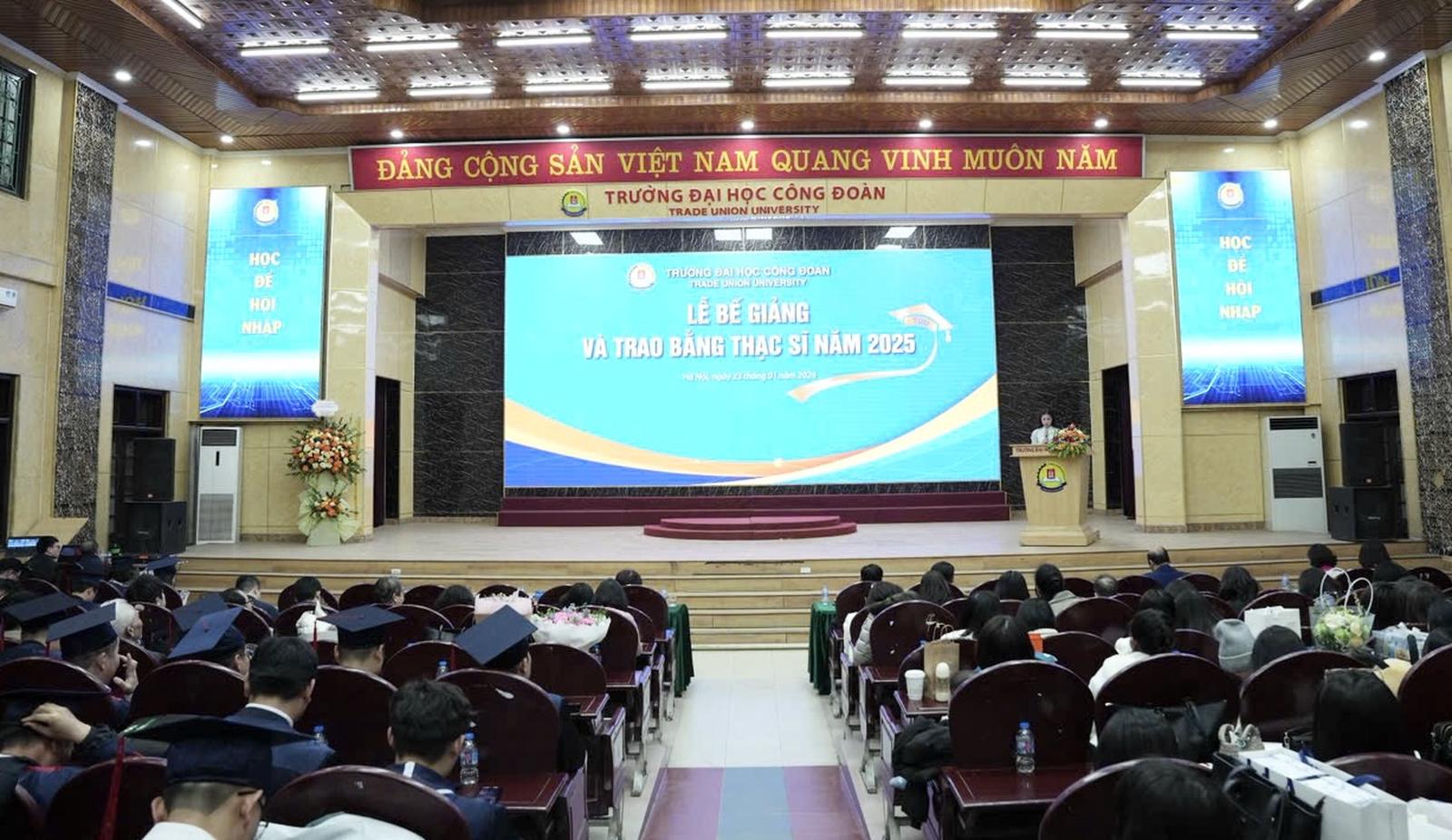 Chiều 23/1, Trường Đại học Công đoàn tổ chức Lễ bế giảng và trao bằng thạc sĩ năm 2025 cho học viên cao học khóa 2023-2025. Buổi lễ được tổ chức trang trọng, thể hiện sự quan tâm của Nhà trường đối với kết quả học tập, nghiên cứu khoa học của học viên cao học.