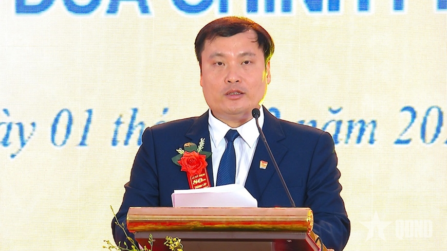 Đồng chí Triệu Trung Kiên, Bí thư Đảng ủy, Hiệu trưởng Trường THPT Hùng Vương trình bày diễn văn.