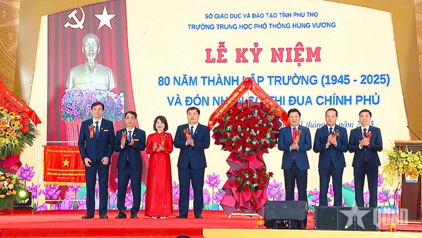 Sáng 1-12, Trường THPT Hùng Vương, tỉnh Phú Thọ tổ chức Lễ kỷ niệm 80 năm ngày thành lập trường (1-12-1945 / 1-12-2025) và đón nhận cờ thi đua của Chính phủ.