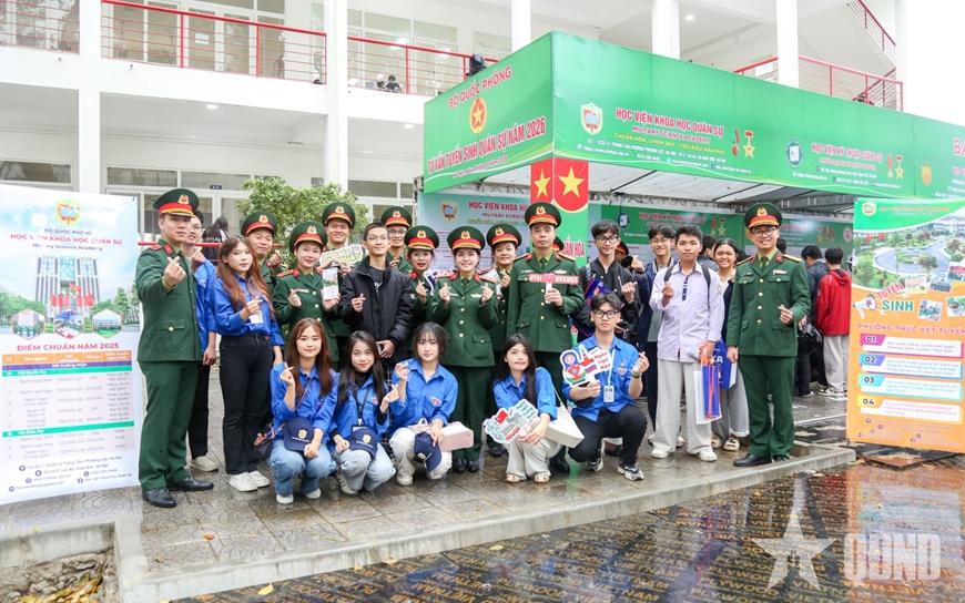 Cán bộ, học viên Học viện Khoa học Quân sự tham gia Ngày hội Tư vấn tuyển sinh - hướng nghiệp năm 2026 tại Hà Nội. Ảnh: XUÂN HÙNG