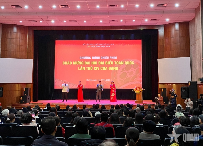 Sáng 14-1, tại Rạp Ngọc Khánh, Hà Nội, Viện Phim Việt Nam tổ chức khai mạc Chương trình chiếu phim chào mừng Đại hội đại biểu toàn quốc lần thứ XIV của Đảng, với sự tham dự của các đại biểu khách mời trong và ngoài nước cùng đông đảo khán giả yêu điện ảnh.