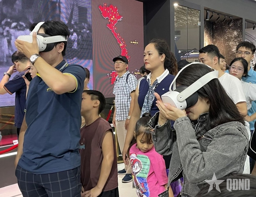 Điểm mới mẻ và hấp dẫn của không gian trưng bày Bộ Quốc phòng năm nay chính là việc ứng dụng công nghệ thực tế ảo (VR) để tái hiện các chiến dịch lịch sử. Với thiết bị kính VR, người tham quan như được trực tiếp hòa mình vào bầu không khí hào hùng của những ngày tháng lịch sử.