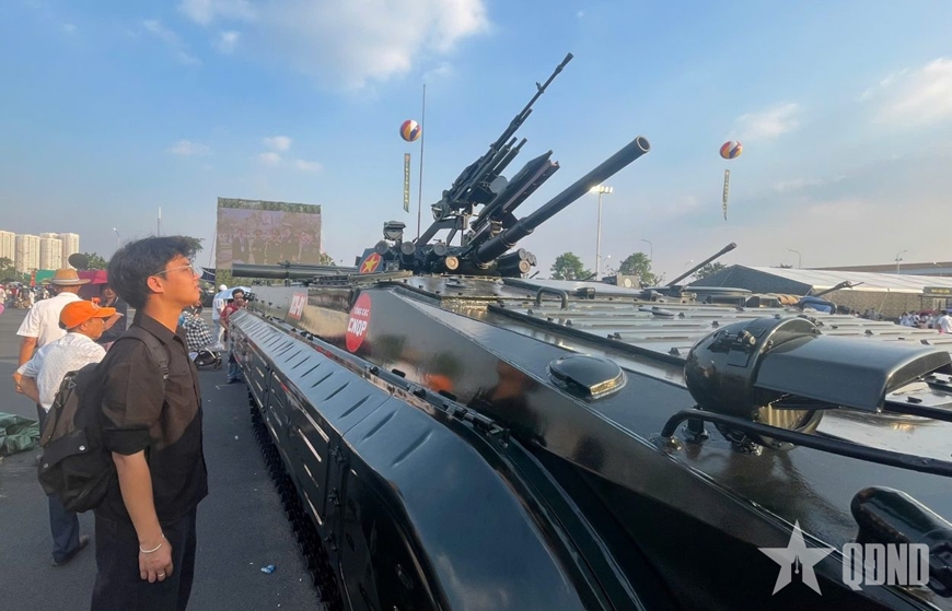 Không gian trưng bày ngoài trời của Bộ Quốc phòng thu hút đông đảo khách tham quan, nhất là giới trẻ. |