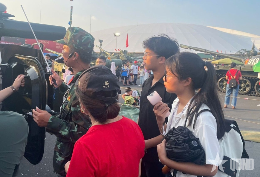 Bạn Lê Thị Phương Mai, sinh viên năm thứ hai Học viện Phụ nữ Việt Nam xúc động nói: “Đến tham quan khu trưng bày ngoài trời của Bộ Quốc phòng, tôi cảm nhận rõ mỗi chiếc xe, khẩu pháo đều kể lại câu chuyện về sự hy sinh để chúng ta có được hòa bình hôm nay. Tôi đặc biệt ấn tượng khi thấy rất nhiều bạn trẻ cùng tham gia, chăm chú lắng nghe và ghi lại hình ảnh. Điều đó chứng tỏ tinh thần yêu nước, niềm tự hào dân tộc đang được thế hệ trẻ tiếp nối và lan tỏa”.