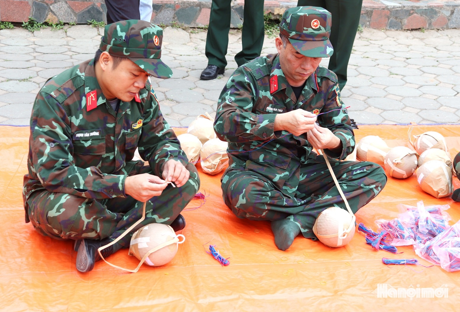 Các chiến sĩ bộ đội đang đấu mồi lửa điện vào quả pháo. Ảnh: Tuấn Điệp