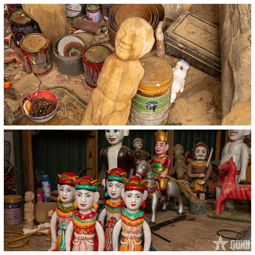 | Các nghệ nhân làng Đào Thục còn tự tay chế tạo nên những con rối gỗ. |