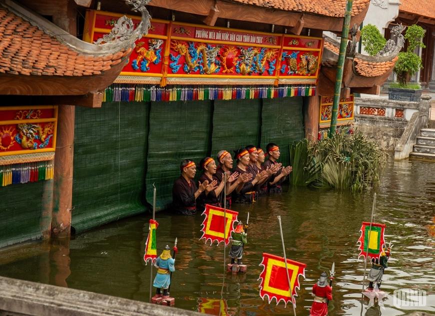 Khi tiếng nhạc truyền thống réo rắt vang lên, những con rối gỗ như có hồn, thoăn thoắt lướt đi trên mặt nước dưới sự điều khiển tài tình của các nghệ nhân ẩn mình sau tấm mành tre. Đằng sau sự uyển chuyển, sống động của từng con rối là cả một quá trình lao động miệt mài, sự phối hợp ăn ý và kỹ thuật điêu luyện. Họ khéo léo di chuyển, giật dây, tạo nên những cử động nhịp nhàng, thổi hồn vào từng nhân vật gỗ, tái hiện những câu chuyện dân gian, những cảnh sinh hoạt đời thường của làng quê Việt Nam một cách sinh động và đầy cuốn hút.
