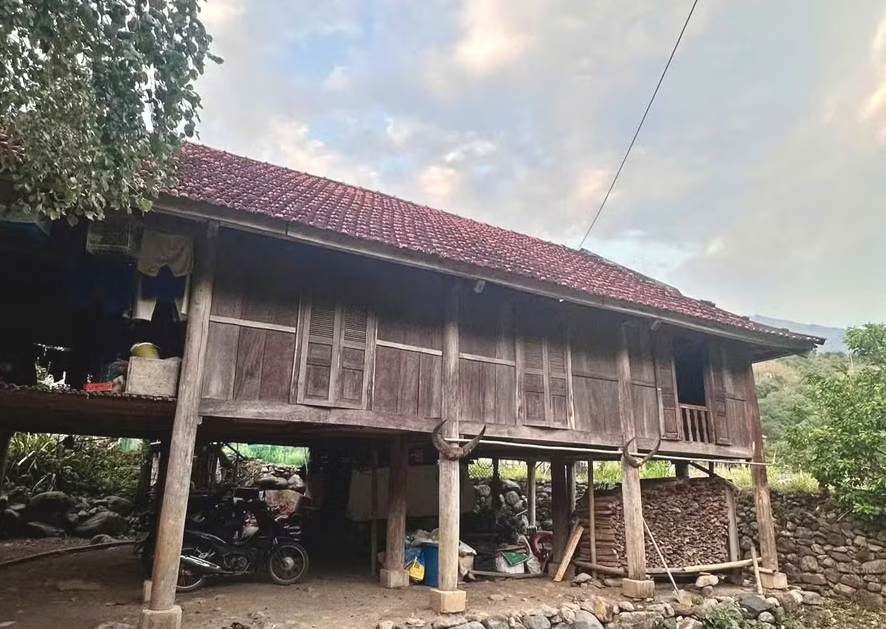 Theo sự giới thiệu của người dân, chúng tôi tìm đến ngôi nhà sàn truyền thống của gia đình ông Hà Văn Miếng ở bản Mường, xã Tà Hộc. Ngôi nhà được dựng từ năm 1984, đến nay vẫn giữ gần như nguyên vẹn hình dáng ban đầu. Những cột gỗ lớn, xà ngang, tấm ván sàn đều được làm từ các loại gỗ lõi như lim, mít rừng, nghiến nên rất chắc chắn, qua hàng chục năm vẫn bền vững, không bị mối mọt hay ẩm mốc. Mái ngói phủ rêu theo năm tháng khiến ngôi nhà mang vẻ cổ kính, trầm mặc, như một chứng nhân của thời gian.