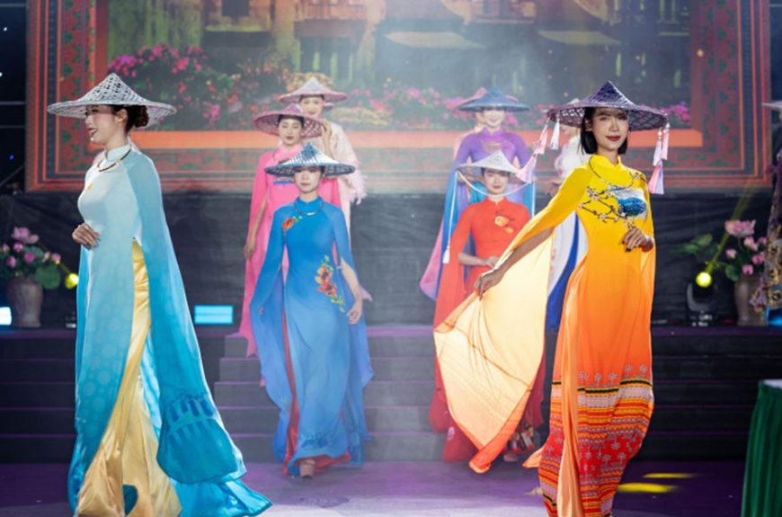 | Bộ sưu tập “Hương sắc Việt Nam” của nhà thiết kế Vũ Thảo Giang được trình diễn tại Lễ hội áo dài du lịch Hà Nội năm 2025. Ảnh: LÊ PHÚ |
