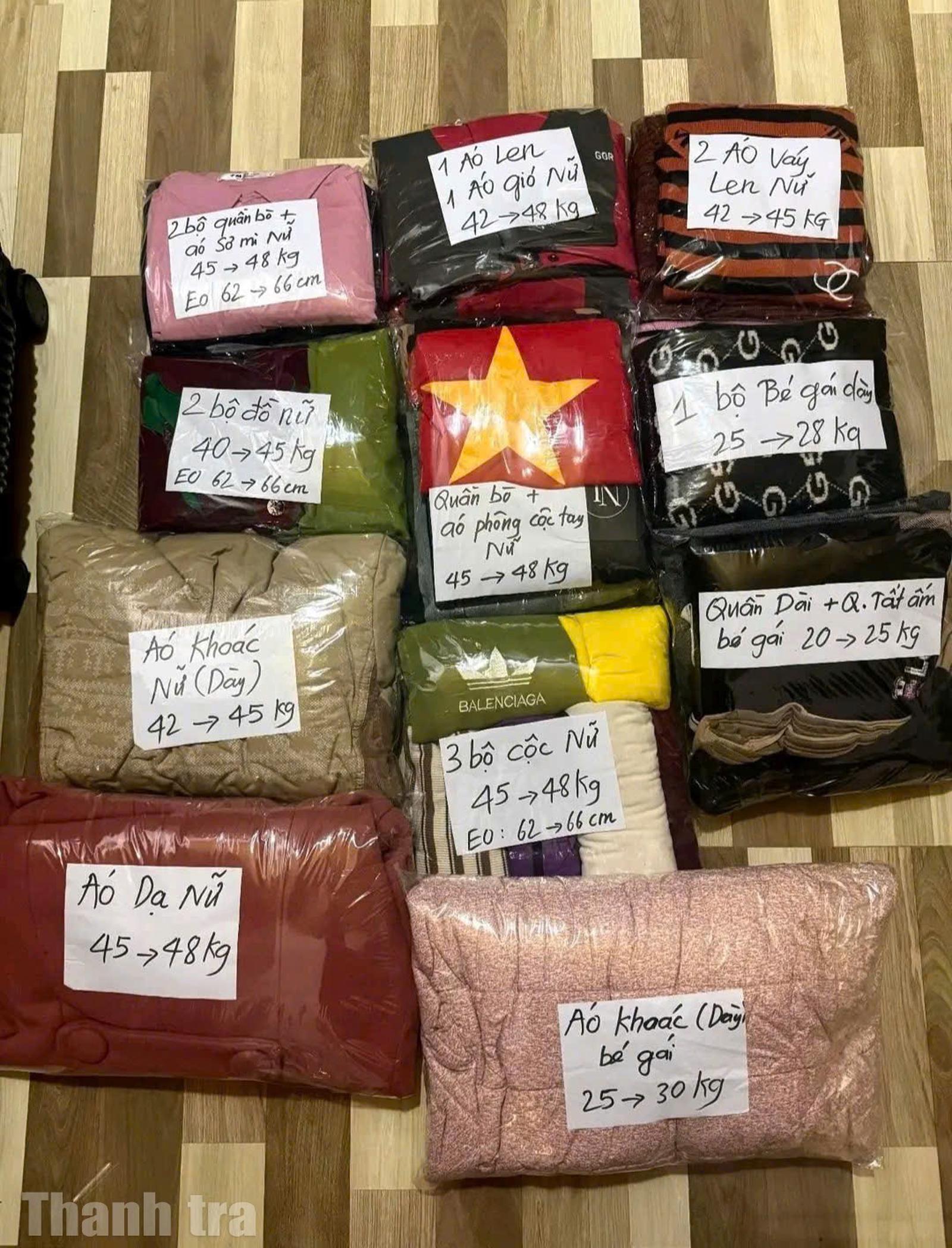 Những bao quần áo được người dân Hà Nội gói ghém cẩn thận, từng kiện đều được giặt sạch, gấp phẳng và ghi chú phân loại rõ ràng theo kích cỡ, độ dày, đối tượng sử dụng. Đó không chỉ là những món đồ thiết yếu gửi tới đồng bào vùng lũ, mà còn chứa đựng sự chu đáo, sẻ chia và tấm lòng nhân ái đặc trưng của người Hà Nội. Ảnh: Trí Vũ