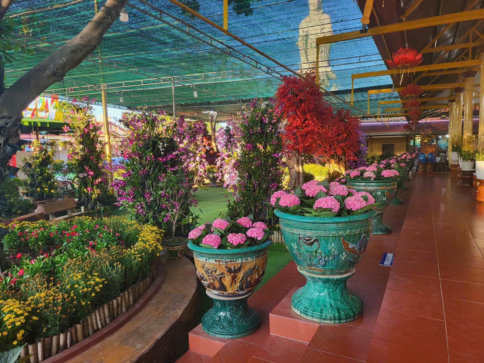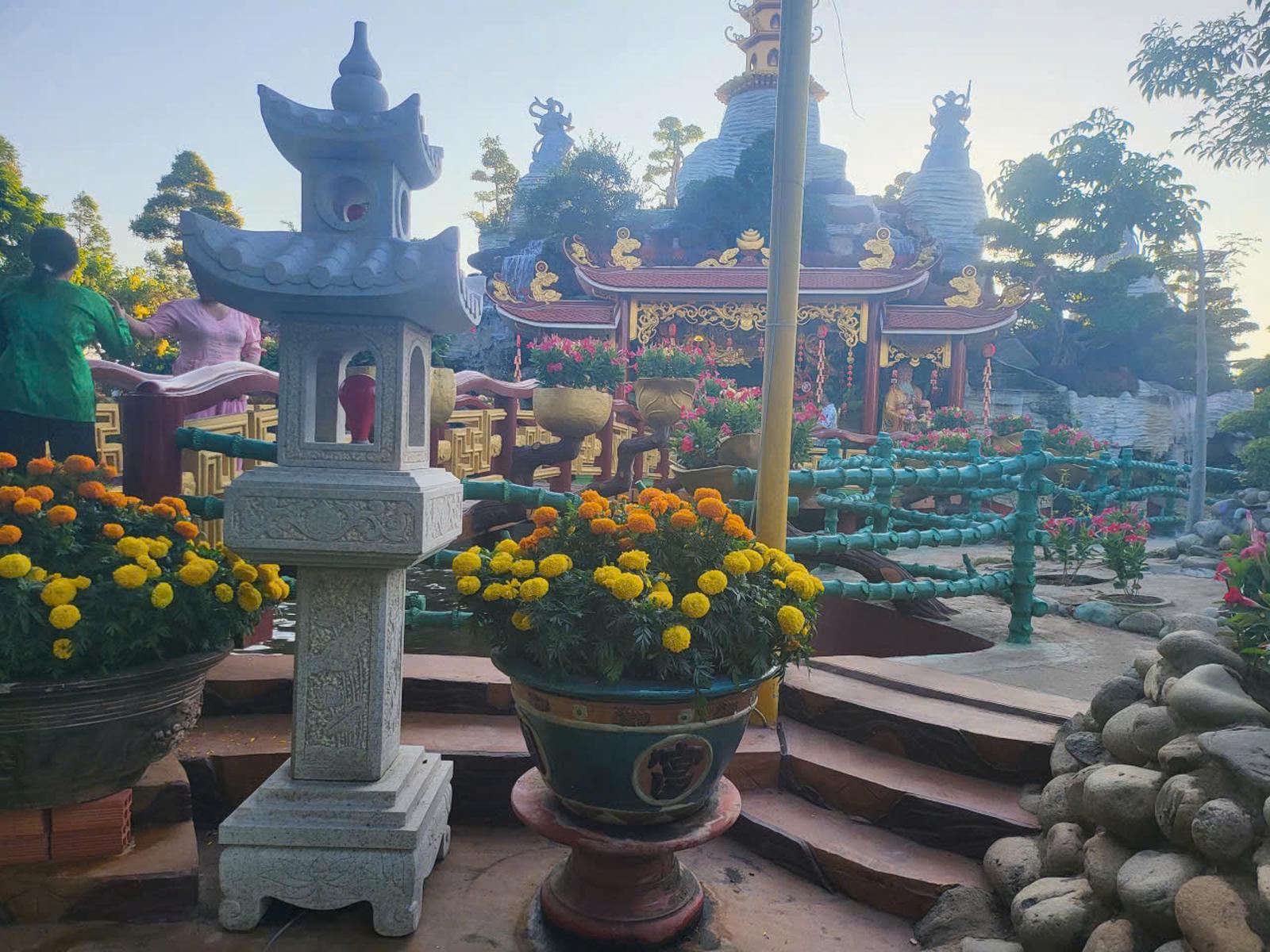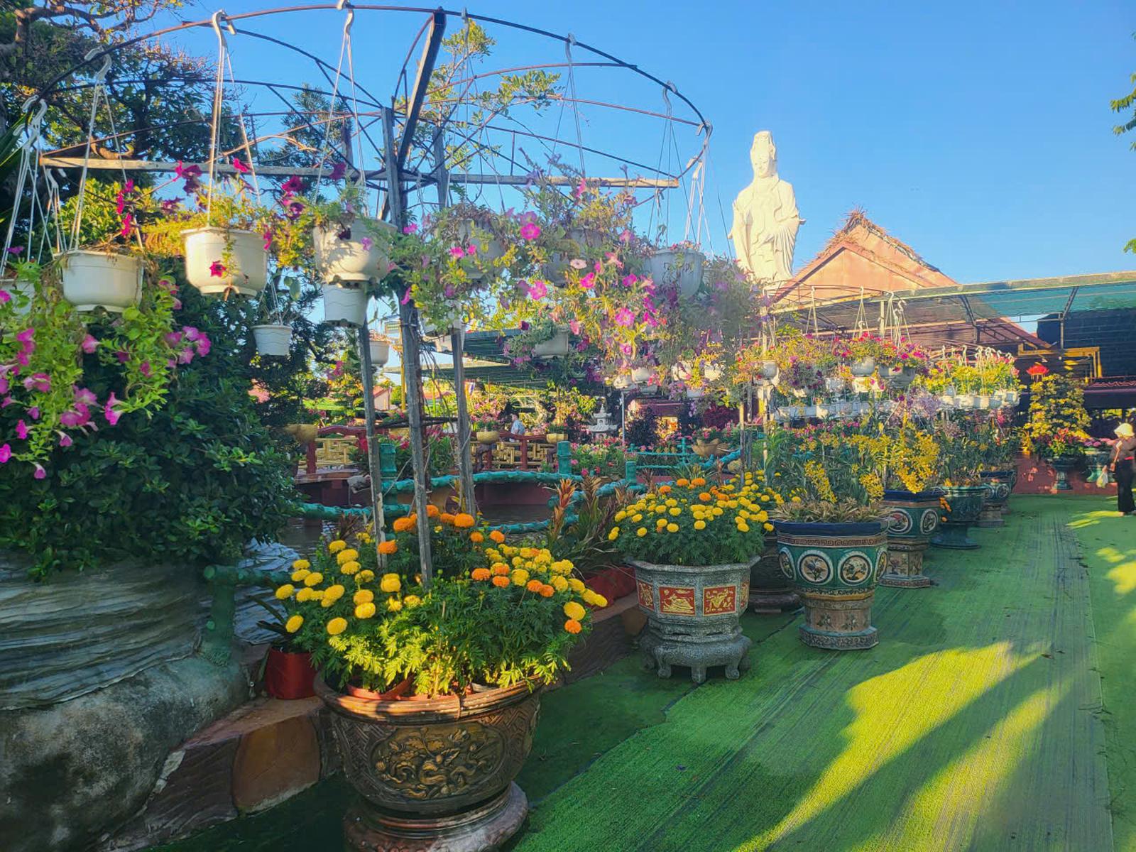 Ngôi thờ tự ví như "tiên cảnh" được phủ đầy sắc hoa với hàng nghìn chậu hoa quý