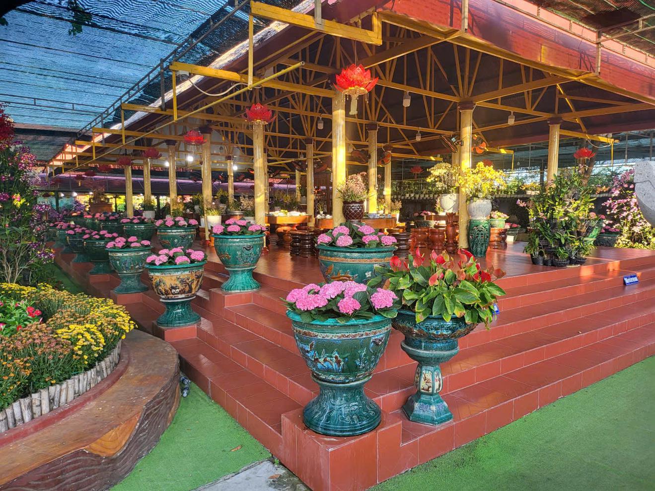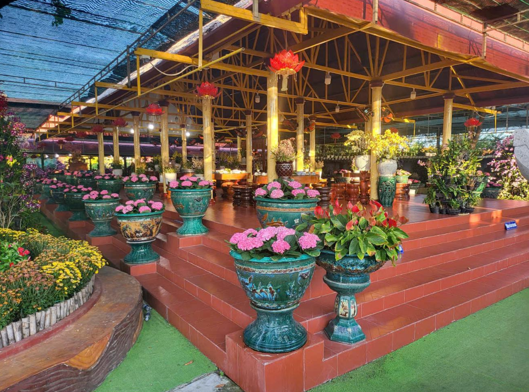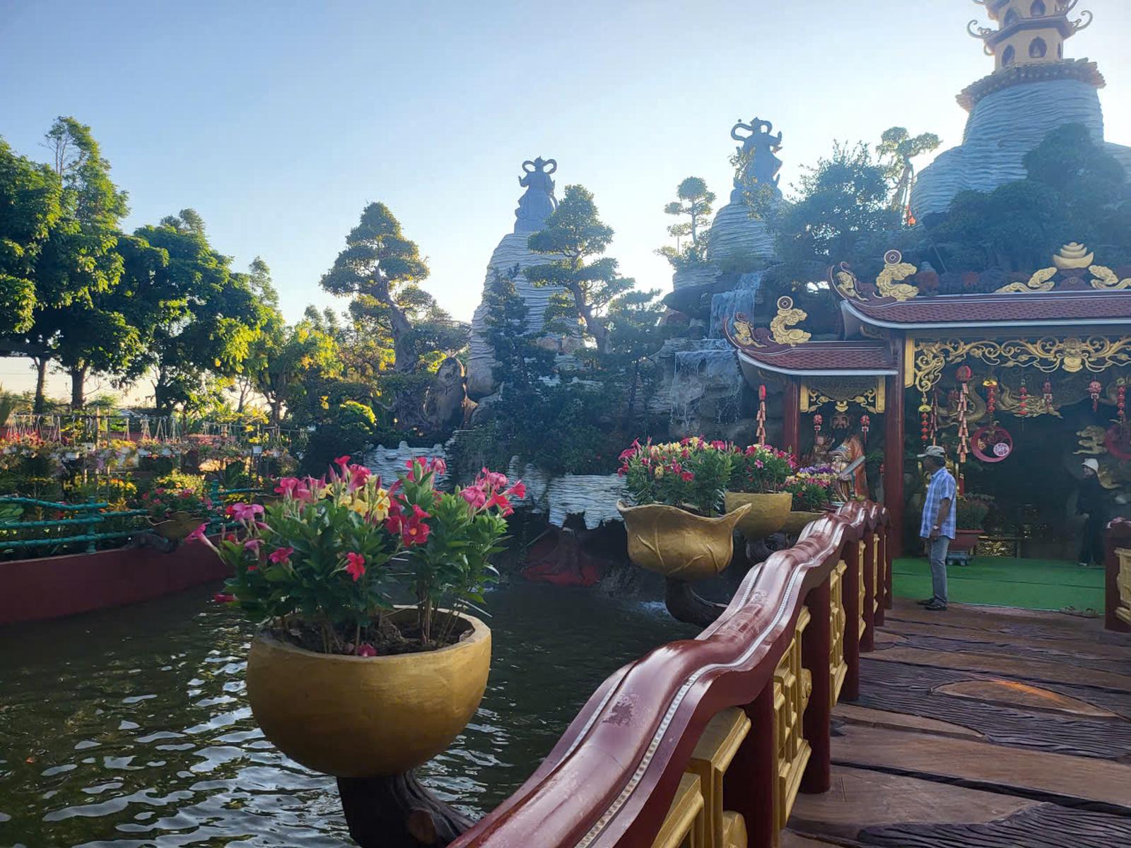 Ngôi thờ tự ví như "tiên cảnh" được phủ đầy sắc hoa với hàng nghìn chậu hoa quý