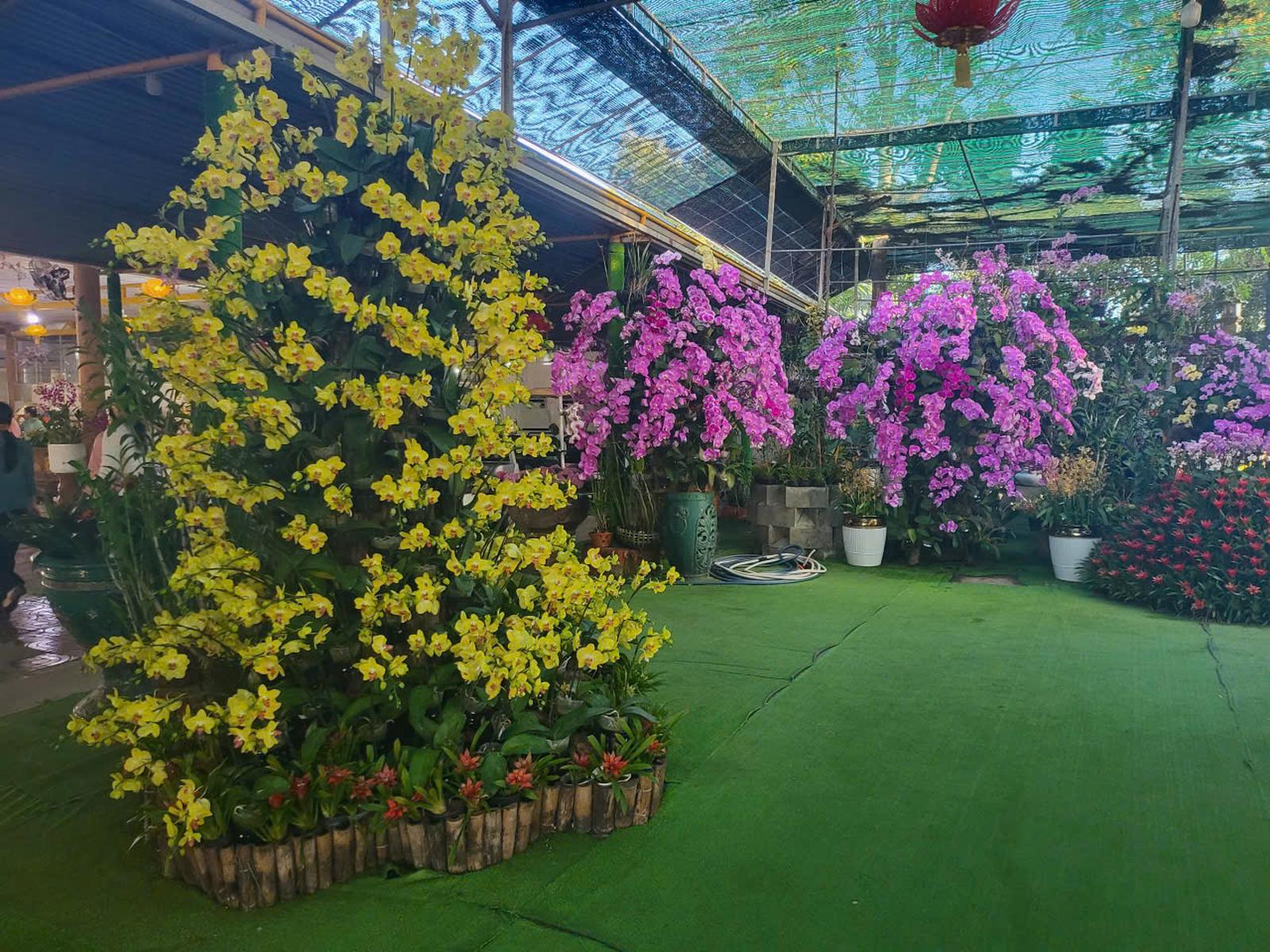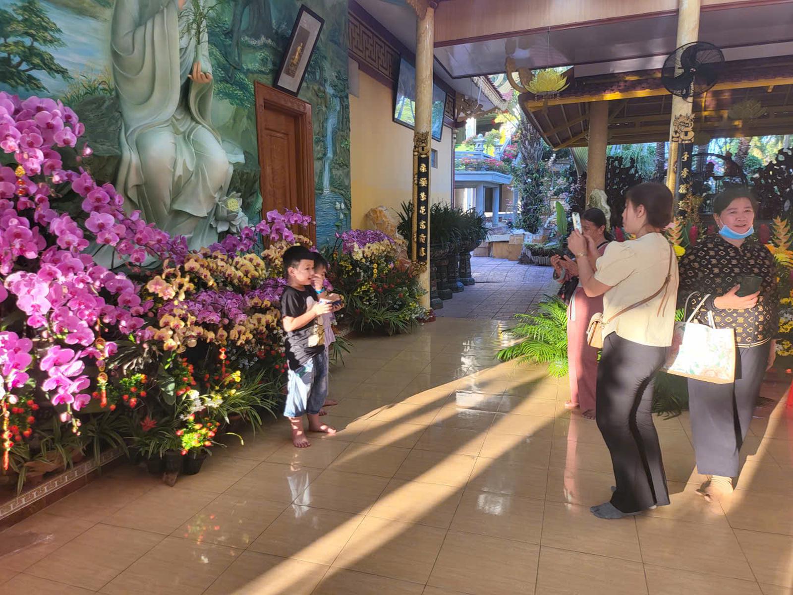 Du khách choáng ngợp trước "rừng" hoa lan được phủ đầy trong khuôn viên ngôi chùa.