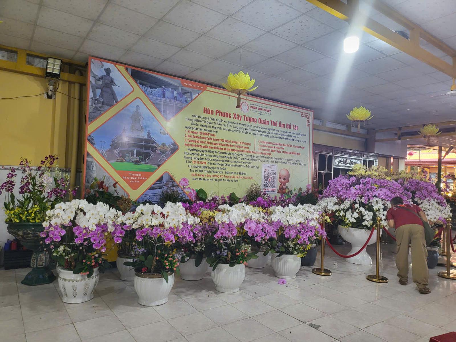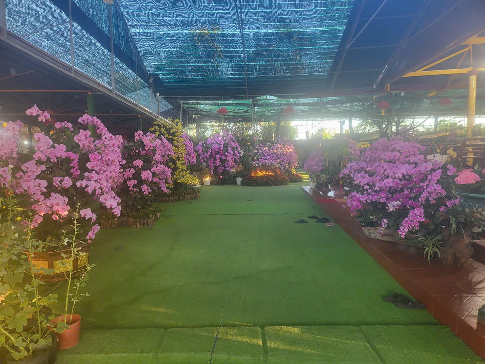 Hàng nghìn chậu hoa lan được phủ đầy trên diện tích chùa rộng 12ha.