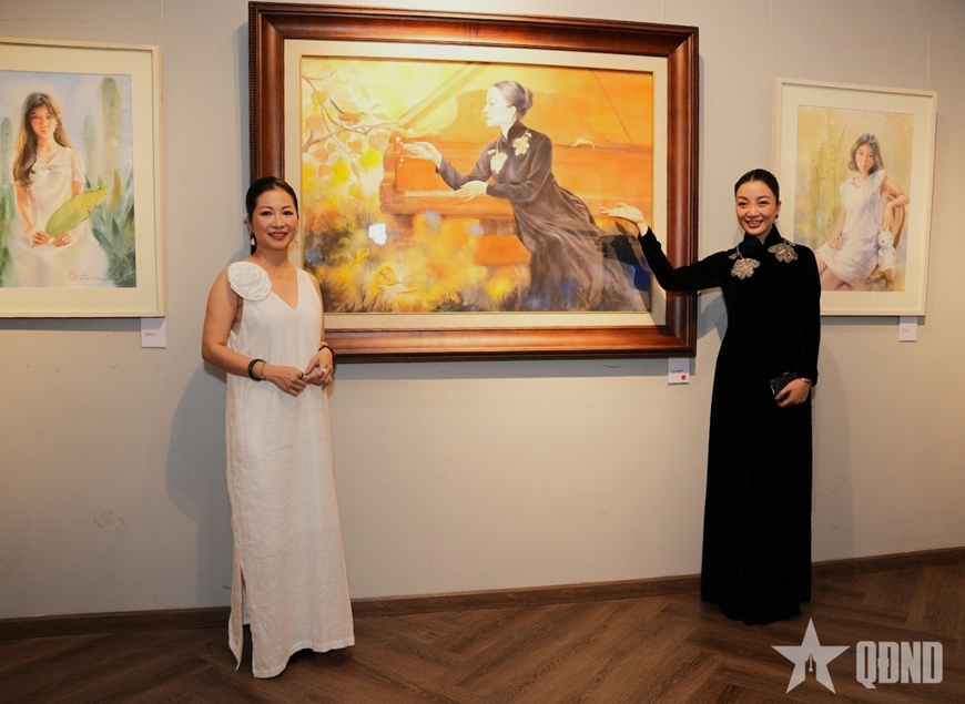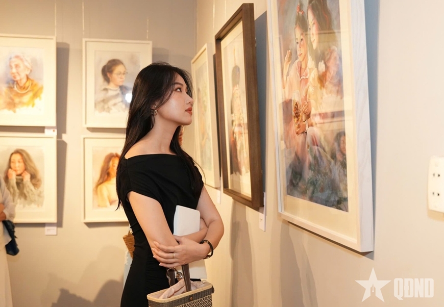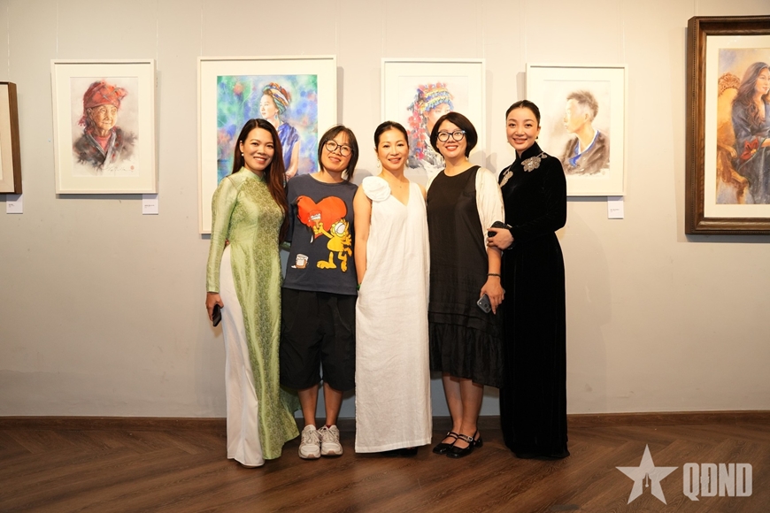 Bên cạnh đó, triển lãm cũng giới thiệu đến khách tham quan những tác phẩm đi sâu hơn vào chủ đề nữ tính, đời sống miền núi và những ký ức riêng tư. Chân dung các thiếu nữ người Mông, Dao, Tày… hiện lên với những trang phục dân tộc truyền thống. Tác giả sử dụng sắc màu trong trẻo, lớp màu loang đặc trưng của màu nước. Qua đó, mang đến cảm giác thân thuộc nhưng đồng thời vẫn đậm chất biểu tượng, như những câu chuyện đời sống vừa thực vừa mơ trong ánh nhìn của họa sĩ. Đứng trước các chân dung, người xem như đang đối thoại với những nhân vật trong tranh, để thêm hiểu thêm yêu những vẻ đẹp tiềm ẩn của họ.