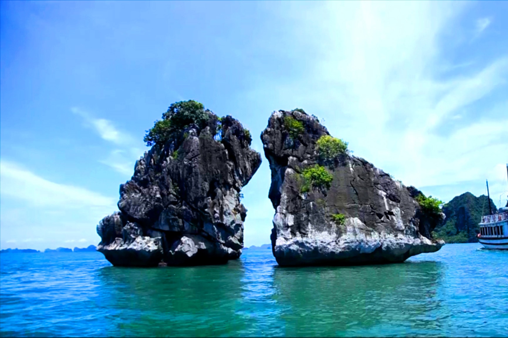 Hòn Trống Mái (hòn Gà Chọi) vốn được biết đến như một biểu tượng du lịch kinh điển của Vịnh Hạ Long, Quảng Ninh. (Ảnh: Dương Hà).
