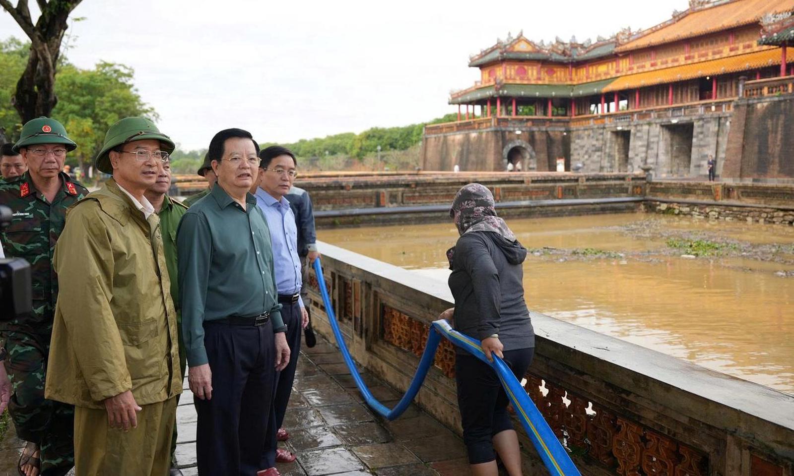 Phó Thủ tướng Mai Văn Chính kiểm tra công tác khắc phục mưa lũ tại Di sản Cố đô Huế và chỉ đạo rà soát, bảo vệ an toàn các hạng mục di tích. Ảnh: NH