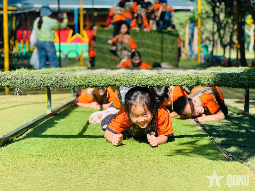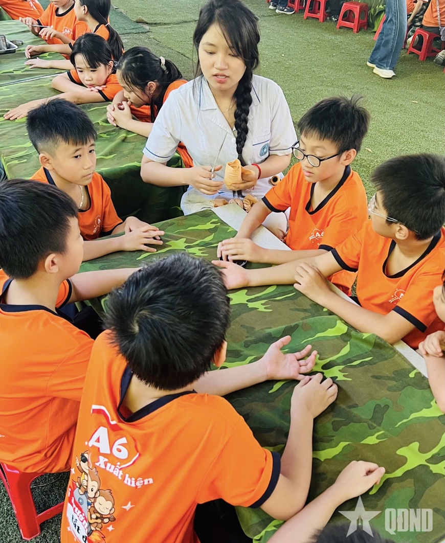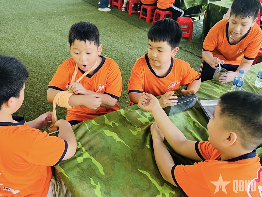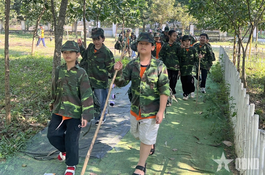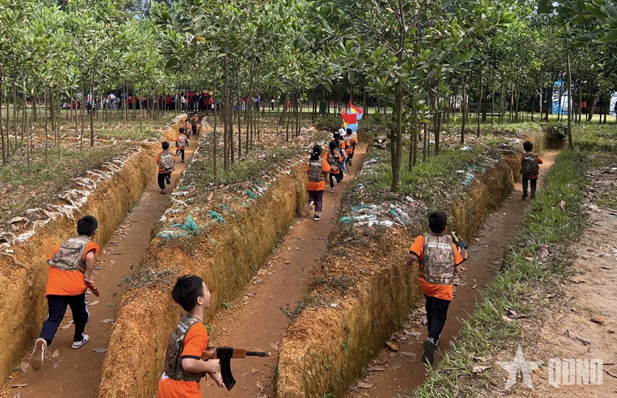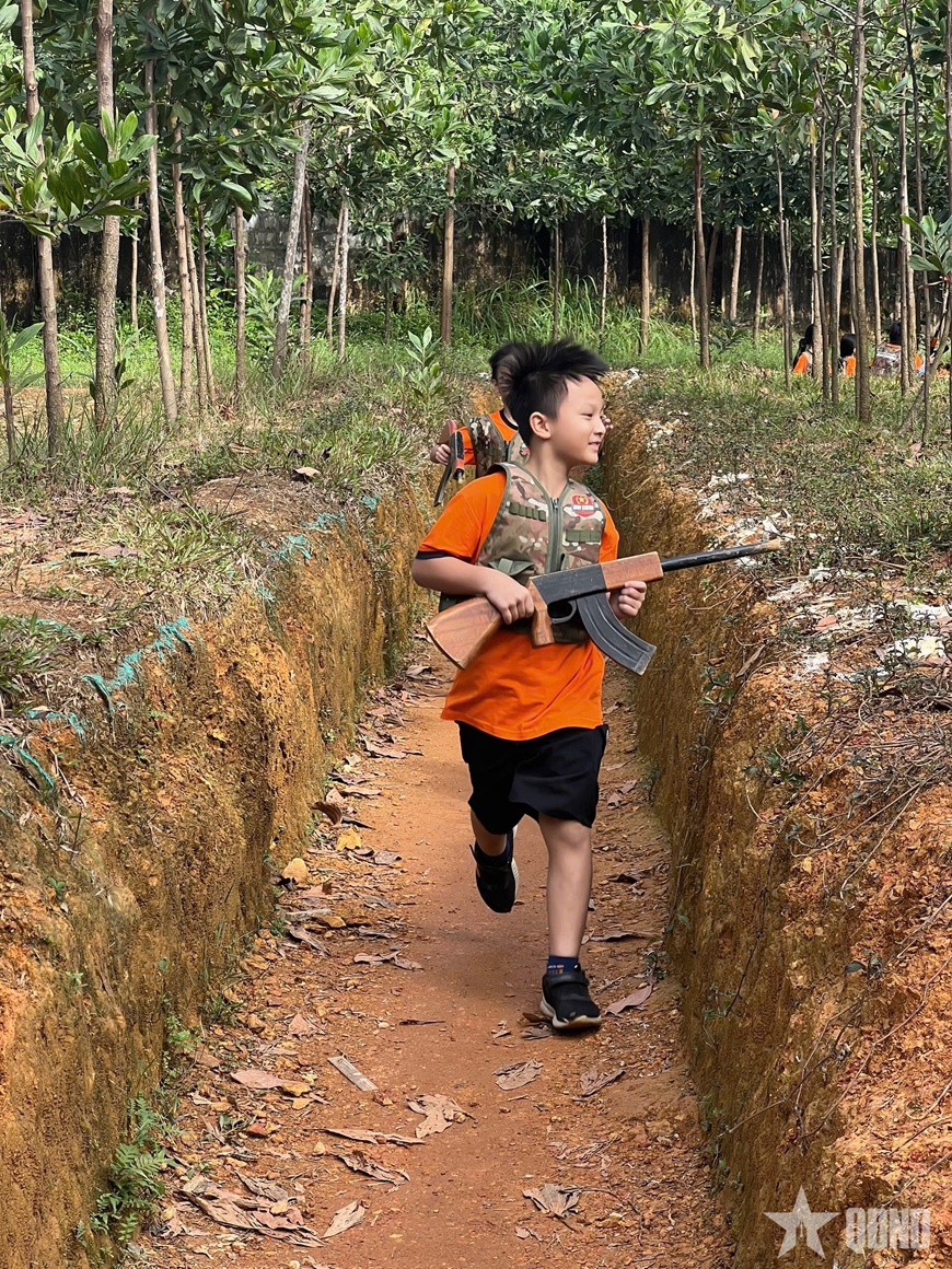 Ai nấy đều háo hức bởi cách đây ít tháng, các em vừa cùng ông, bà, bố, mẹ chứng kiến Đại lễ A80 đầy cảm xúc tại Thủ đô và qua các phương tiện thông tin đại chúng. Các em được hóa thân thành chiến sĩ giao liên, bộ đội đặc công, chiến sĩ quân y tận tụy chăm sóc đồng đội... Những chuyến hành quân qua các “cánh rừng mô phỏng” khiến các em hiểu hơn về sự gian khổ mà các thế hệ cha anh đã trải qua...