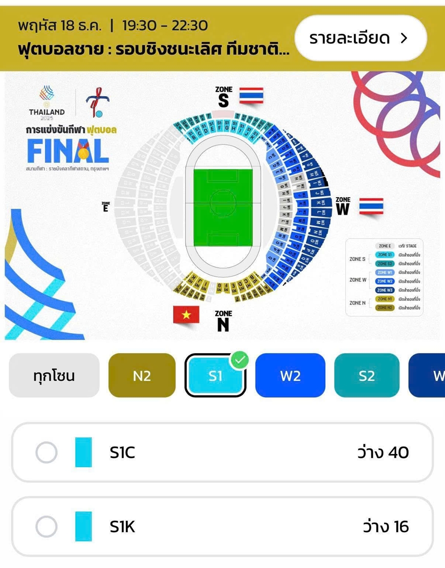 Do sân Rajamangala dành gần như toàn bộ khán đài B để đặt màn hình LED chuẩn bị cho lễ bế mạc SEA Games 33, nên số vé được Ban tổ chức phát ra chỉ khoảng 30.000 vé, chiếm hơn một nửa số ghế của sân.