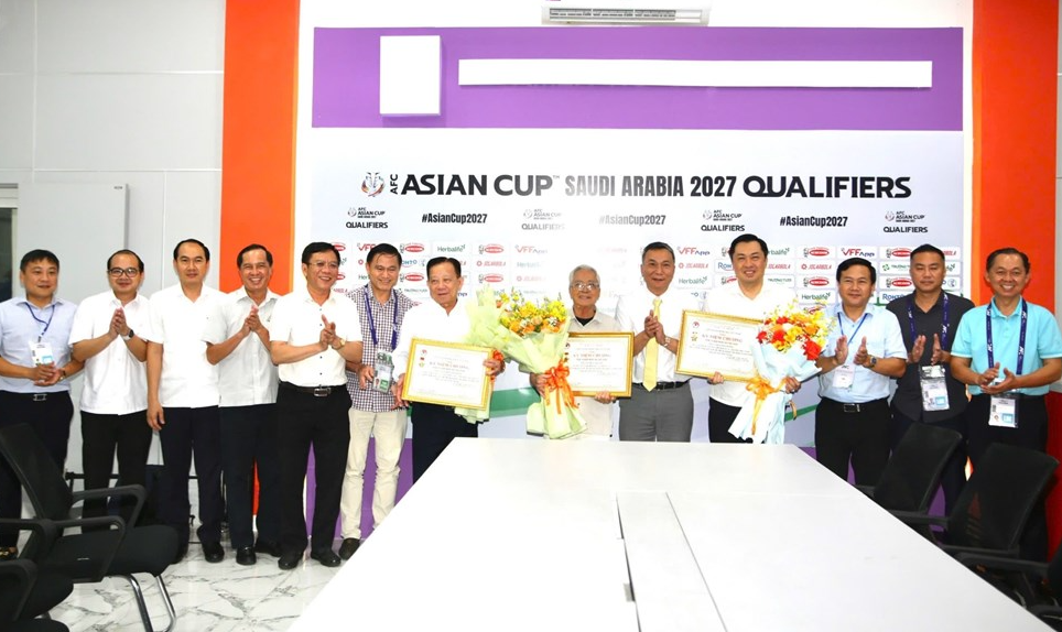 Theo đó, Chủ tịch VFF Trần Quốc Tuấn đã trao Kỷ niệm chương “Vì sự nghiệp Bóng đá Việt Nam” cho các cá nhân: Ông Nguyễn Văn Hùng - Chủ tịch Tập đoàn Becamex, ông Vũ Đức Thành - nguyên Chủ tịch Liên đoàn Bóng đá Bình Dương và ông Cao Văn Chóng - Phó Giám đốc Sở VHTT TP.HCM.