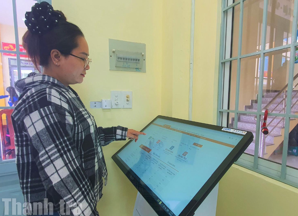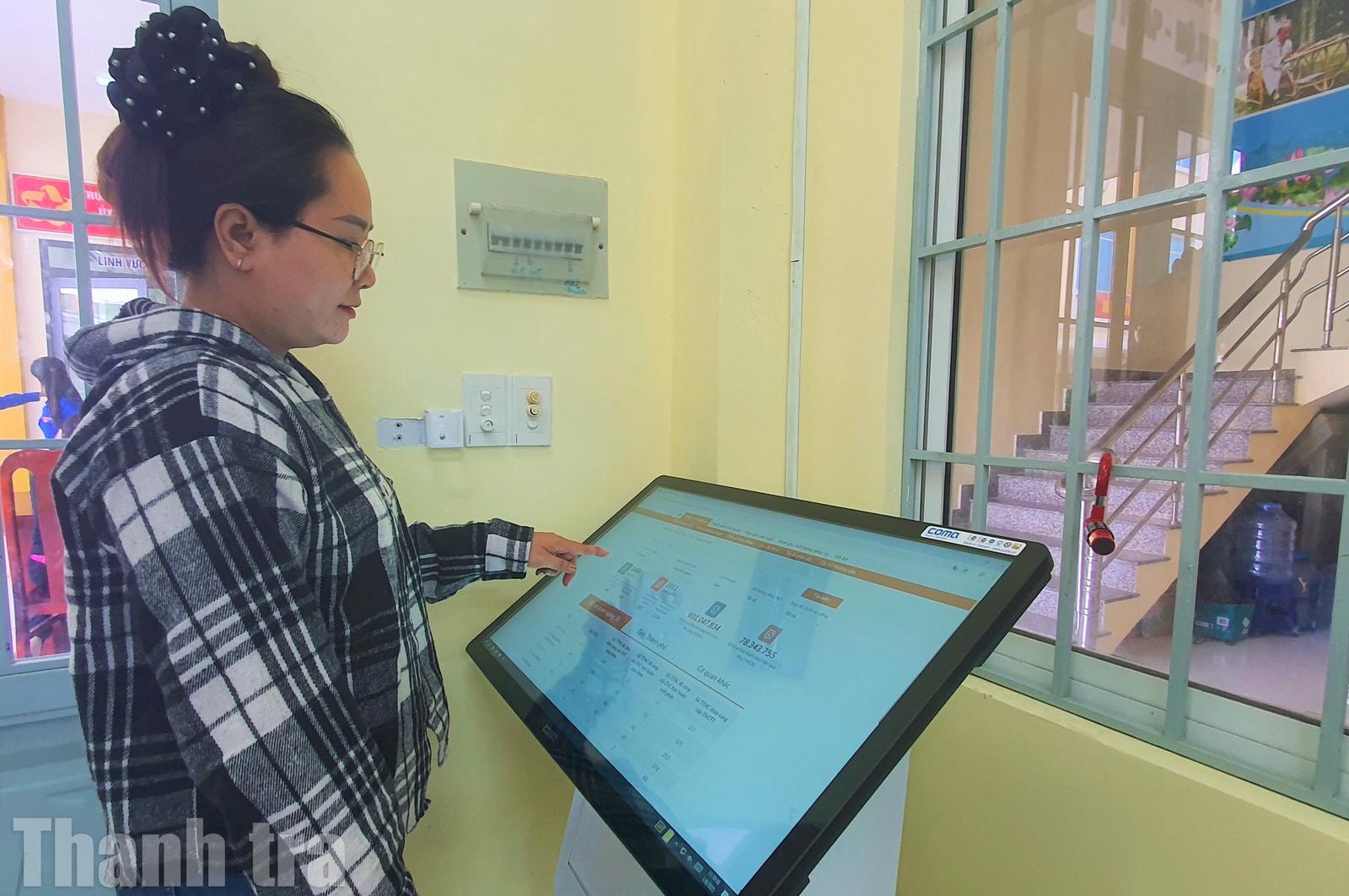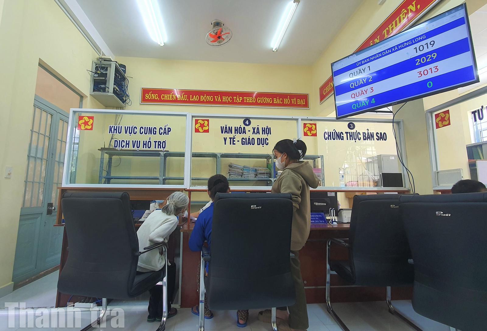 Người dân thao tác trên máy tính đặt tại trụ sở UBND xã Hưng Long. Ảnh: Chu Tuấn