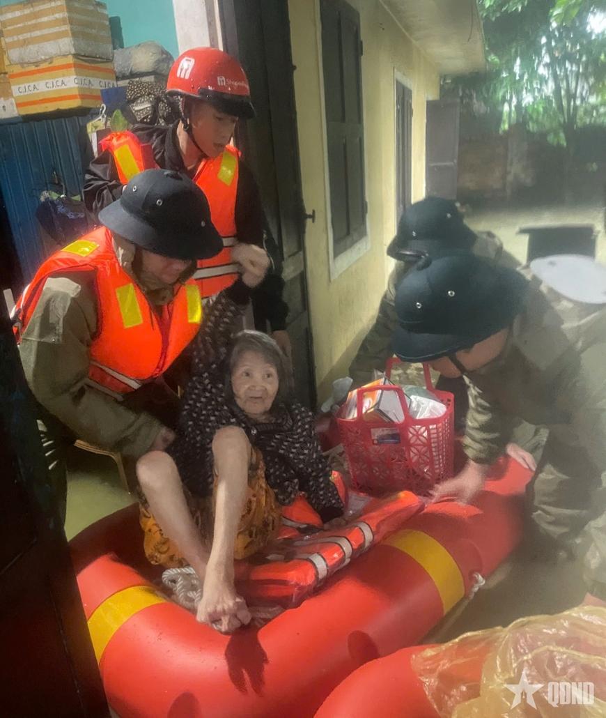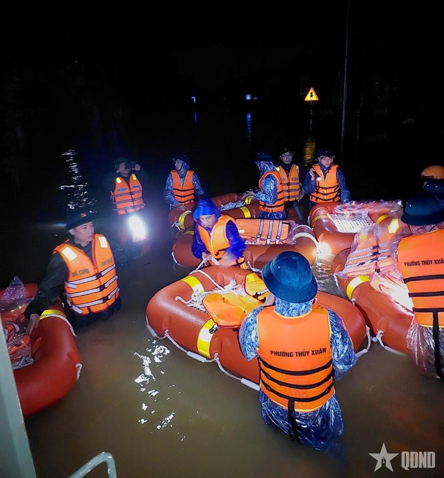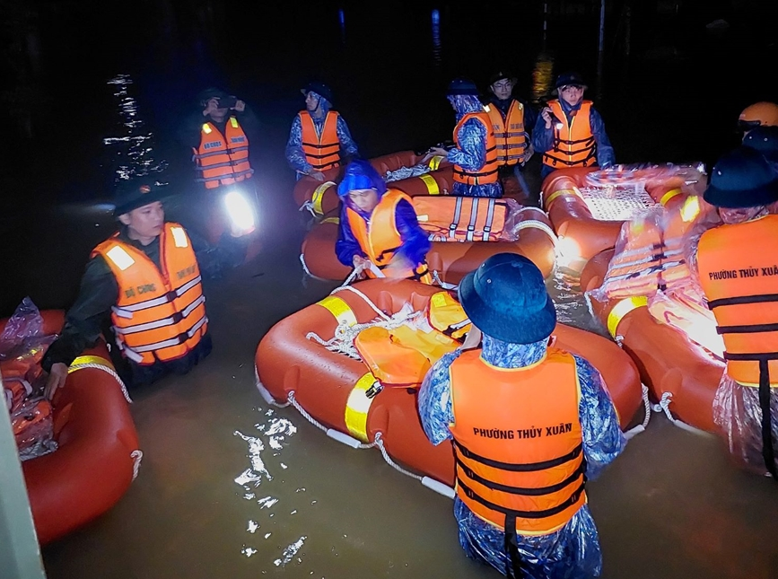 Cũng trong đêm 27, rạng sáng 28-10, Bộ CHQS TP Huế tiếp tục điều động hàng trăm cán bộ, chiến sĩ cùng nhiều phương tiện cơ động đến các địa bàn bị ngập sâu, chia cắt, phối hợp với các lực lượng di dời người dân đến các vị trí tránh trú, bảo đảm an toàn.