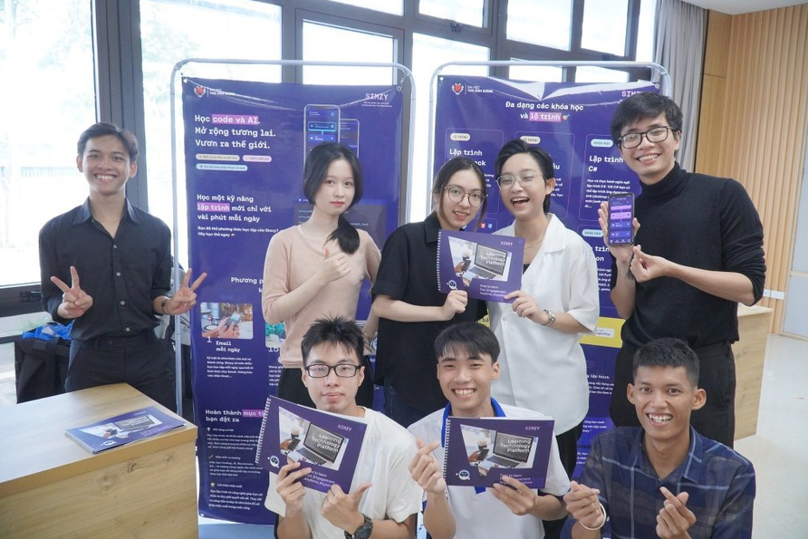 Thành viên dự án phát triển nền tảng học tập lập trình trực tuyến Simzy giới thiệu sản phẩm. Ảnh: Lê Trang - Dung Nguyễn. |