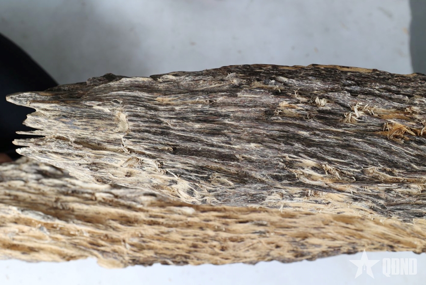 Nạo lớp gỗ mỏng màu vàng bên ngoài để thấy được lõi trầm màu đen bên trong.